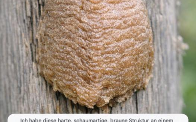 Ich habe diese harte, schaumartige, braune Struktur an einem Zaunpfahl im Garten entdeckt.